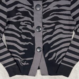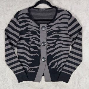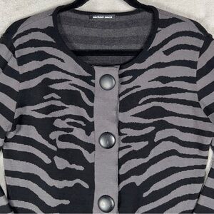 Michael Simon Zebra Print 3 Button Cardigan Sweater Women's Medium Black Gray Vintage.