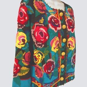 Michael Simon colorful vintage bright floral embroidered cardigan sweater size L