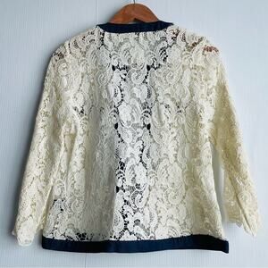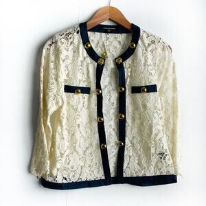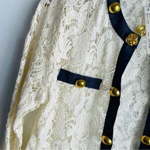 🆕 Michael Simon crocheted button jacket with denim trim NWT cardigan size med