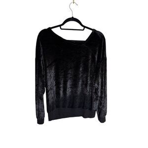Michael Stars 297513 Asymmetrical Neck Velvet Pullover Size Medium Black