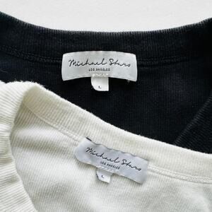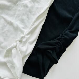Michael Stars 2pc Ribbed Ruched Short Sleeve Tee Shirt Top Large Black White