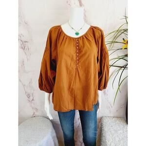 Michael Stars Alexa Balloon Sleeve Blouse - Orange - M