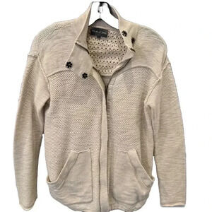Michael Stars Anorak Cream Knit Sweater Drawstring Hem Full Zip Cotton XS/S