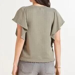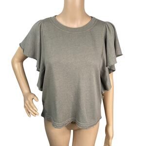 Michael Stars Ariana Olive Green Flutter Sleeve Sweatshirt Top SZ S