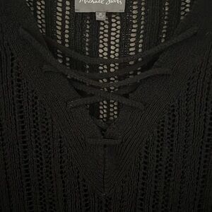 Michael Stars Black Knit Summer Sweater. LS. Lace up collar. SzM EUC. Lagenlook