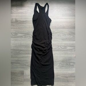 Michael Stars dress. Black. Midi length. Side ruching. Racerback. Bodycon. Cotton and Modal blend. Size XS. Previously owned.
