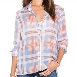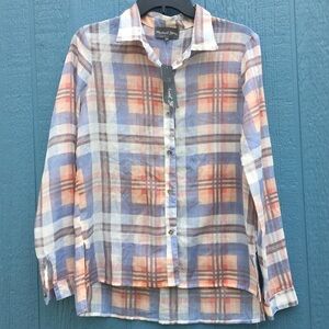 Michael Stars Blue / Orange Bikini Cove Yarn Dye Plaid Button Down Size Small