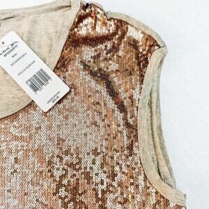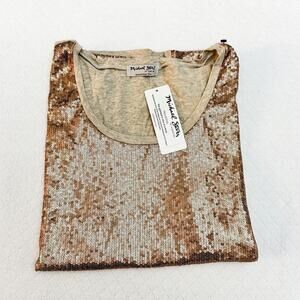 Michael Stars Bronze Sheer Heather Muscle Sleeve Sequin Front Top SZM/L