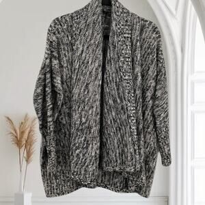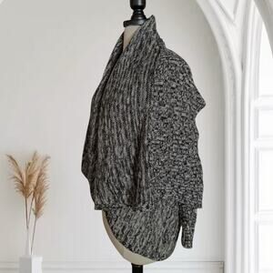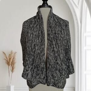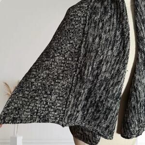 Michael Stars Cardigan Sweater Sz S Oversized Cape Like Shawl Collar Dramatic .. knitted in a Black and Gray Tweed ..