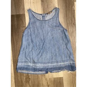 Michael Stars Chambray* Jean Button Back Raw Hem Sleeveless Blouse, Size XS