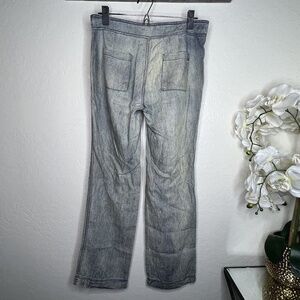 Anthropologie Michael Stars linen denim tencel chambray wide leg trousers pants, size XSmall.so soft and just lovely; waist with drawstring tie, large side pockets, light wash, flattering fit! So versatile and great transition piece from summer to fall. no flaws.