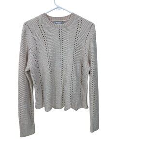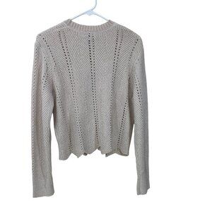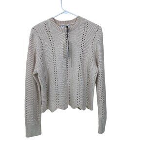 Michael Stars Chenille Sweater Size LP Lakin Cropped Crew Neck Pullover NWT Color Chalk ( Ivory) Scalloped Soft Cozy