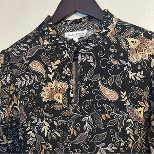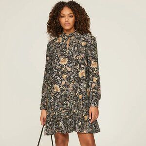Michael Stars Dress Kita Floral Black Tan Keyhole Long Sleeve Paisley Cocktail