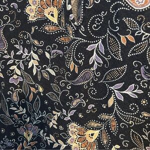 Elegant black dress with a stunning tan floral & paisley pattern. Perfect for any occasion.