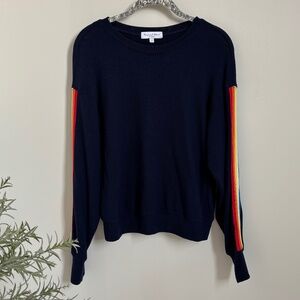 Michael Stars Evereve XS Navy Gigi Pullover crew sweatshirt with stripe trim