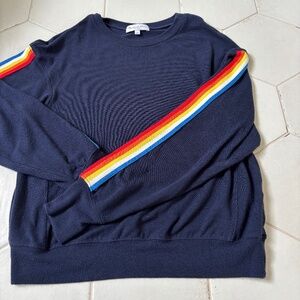 Michael Stars Evereve XS navy Gigi pullover with stripe trim. This lightweight sweatshirt is super soft and perfect for heading into spring. Pair with jeans, shorts or utility pants.