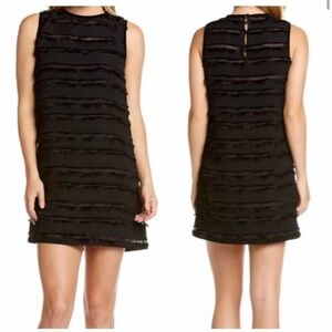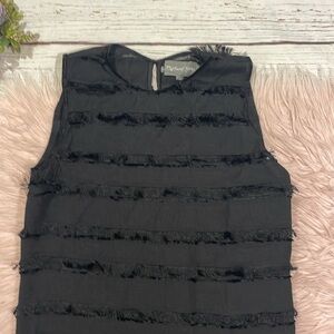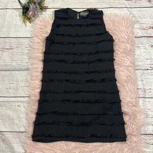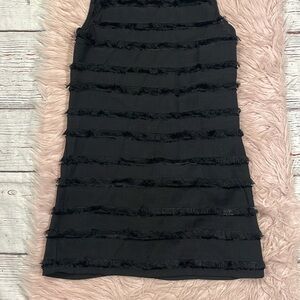 Michael Stars Fringe Trim Tiered Semi Sheer Sleeveless Shift black Mini Dress. This dress is in great used condition