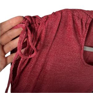 Super comfortable, casual dress with a vertical waist band that can be adjusted to your preference, making it look like a skirt. Side tie gathered sleeves can also be adjusted.