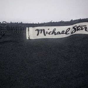 This Michael Stars top has never been worn! Lovely, soft, slightly distressed grey tee with elbow-length short sleeves and a bit of a crop shape. X detailing at neck.