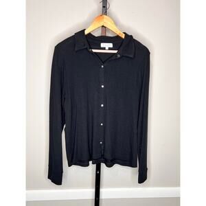 Michael Stars Helen Button Long Sleeve Woven Shirt Black Women's Petite Size LP