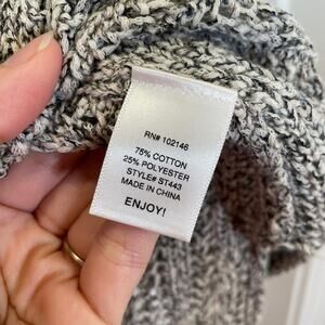 Marled fleck gray lace-up neckline pullover sweater by Michael Stars. A cozy, slightly oversized open knit style in a cotton blend. Excellent pre-owned condition. Bust across the front area measures approx. 23 inches.