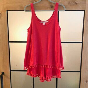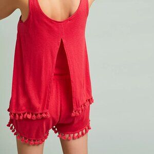 Inspired by the SoCal lifestyle, Michael Stars is synonymous with flattering, wearable essentials for the modern woman. Romper features a scoop neckline, open split back, and tassel trim on tank and shorts. It's the signature poly/rayon blend he’s known for that’s both super comfy and machine washable.