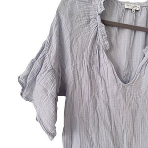 Michael Stars Light Purple Gauze V-Neck Short Sleeve Raw Hem Blouse M