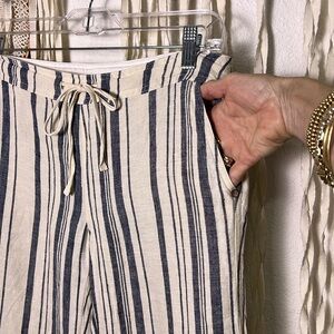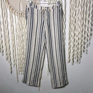 Michael Stars Linen Blue and Tan Stripe Straight Leg Pant Size XS
