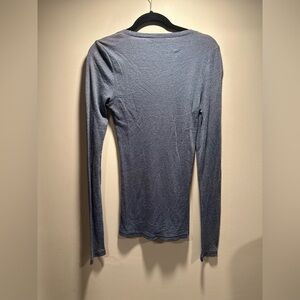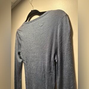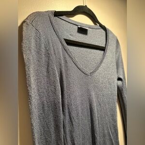 Michael Stars Long Sleeve V Neck Stretchy Blue Metallic Shimmery Top One Size