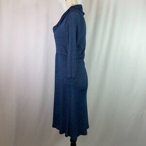 Michael Stars Maternity OS Cowl Neck Dress Blue with Sheen 3/4 Sleeves Fitted