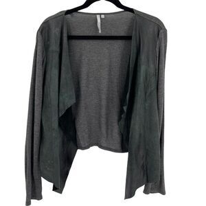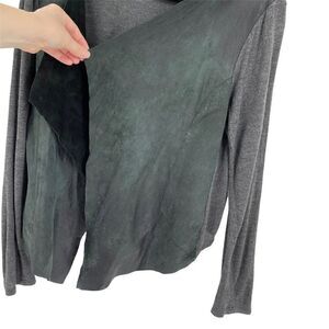 Michael Stars Modal Leather Drapey Open Front Blouse Grey Black Soft Women Med