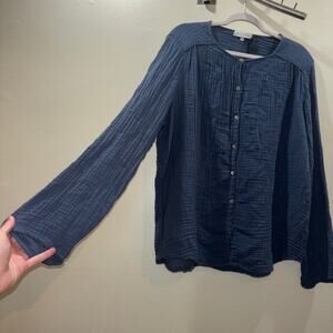 Michael Stars NWT Double Gauze Zia Button Down Top - Lake Blue - Size Large