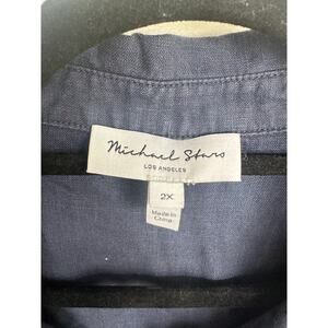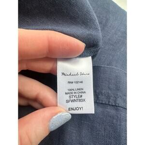 Chic linen navy midi dress by Michael Stars. Features a button-up front and rolled sleeves. Perfect for casual outings.