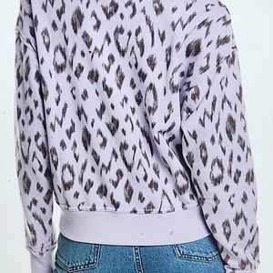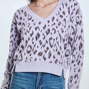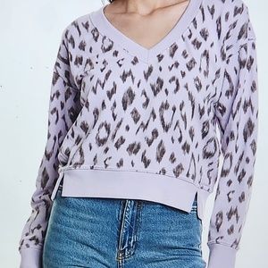 Michael Stars Camila v neck sweatshirt in ikat pattern and/or an abstract leopard / animal print design. It's a pretty light lavender pink color, which is called pale lilac It has somewhat of an oversized fit, slightly cropped. Perfect for year round wear. Size Medium. New without tags. Made in USA