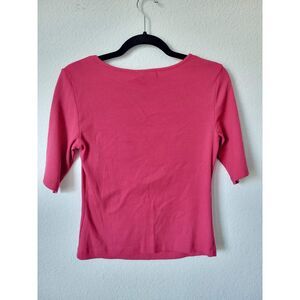Add a pop of color to your wardrobe with this stylish Michael Stars ribbed top in vibrant pink. Featuring a unique front cutout neckline and mid-length sleeves, this piece combines comfort and modern design for an effortlessly chic look. Crafted from a soft cotton-modal blend with stretch for a flattering fit.