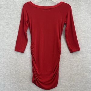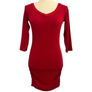Michael Stars Ruched Bodycon Dress Size S 3/4 Sleeve VNeck Mini Stretch Deep Red