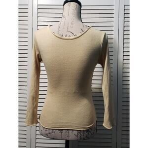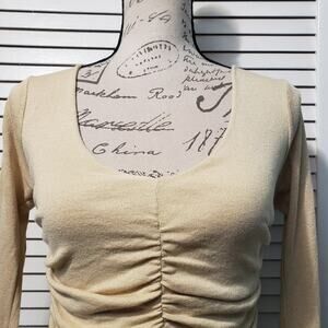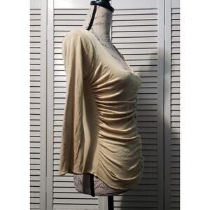 Michael Stars Ruched Shimmer Top Women's OSFM Gold Metallic 3/4 Sleeve Stretch