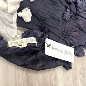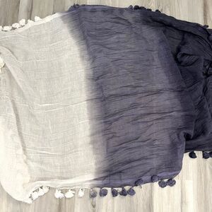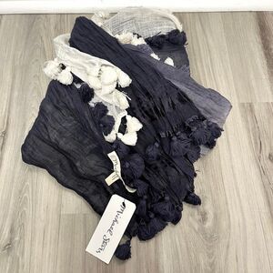 New with Tags Women's Michael Stars Milla Navy Blue & White Ombre Wrap Scarf with Tassel Poms Trim in OS