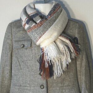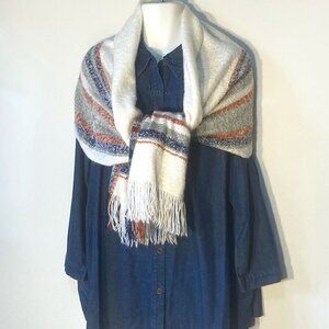 Michael Stars Soft white plaid large oversized scarf/wrap Academia Fisherman