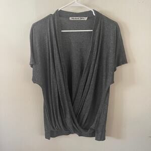 Michael Stars Surplice Top Womens O/S Heather Gray Classic Casual Basic Simple