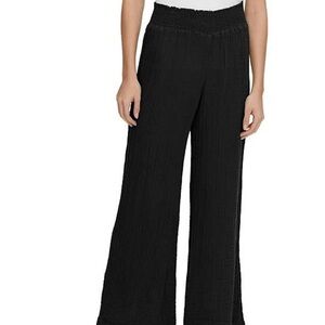 Michael Stars Susie Gauze Black smocked wide leg pants