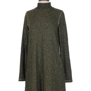 Long sleeve, turtleneck neckline, sweater dress, tweed fabric, green, short