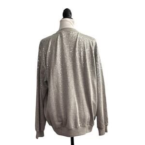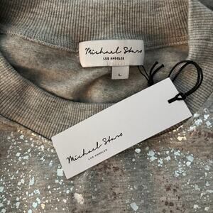 Sweatshirt by Michael Stars. NWT. Excellent Unused Condition. This chic Michael Stars sweatshirt in gray features a bold silver splatter print that adds a touch of glam to your casual wear. Crafted from a soft and comfortable fabric, this sweatshirt is perfect for a laid-back, yet stylish look. The relaxed fit and cozy feel make it ideal for pairing with jeans or leggings for effortless, everyday style. A perfect combination of comfort and a little sparkle!