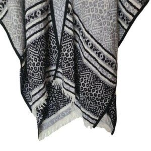 Michael Stars Textured Ruana Poncho Black White Gray One Size