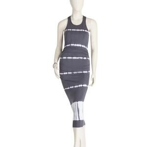 Michael Stars Tie Dye Midi Tank Dress Gray White Ruched Size Large