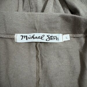 These Michael Stars wide leg pants are a fashion must have! Can be dressed up or down. Cute tie at and elastic waist. Wear them with your favorite heel or even a pair of sneakers. Soft material. Light gray/brown in color.