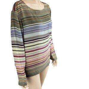 Michael Stars Top Size Medium Multicolored Striped Silk Long Sleeve Blouse
