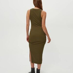 Michael Stars Topiary in Color Wren Ribbed Midi Dress Size Small Like New. A form-fitting, tank dress with a side slit the hem, Wren features a crewneck, midi length, and ruching on the sides at the waist to hug and flatter every curve. Made from our soft Ultra Rib fabric that washes well and keeps it's shape throughout wearing.