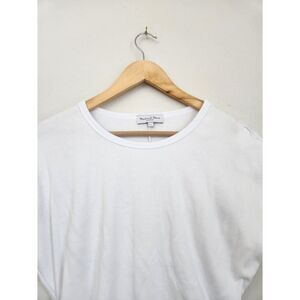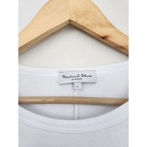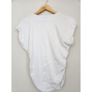 Michael Stars White Ruched Ribbed Cap Sleeve Top | Size L