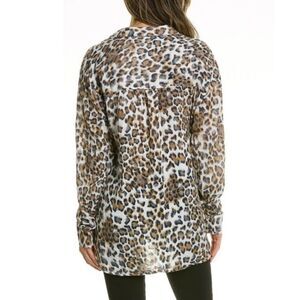 Michael Stars Womens Barb Button-Down Brown Leopard Shirt Size Med
